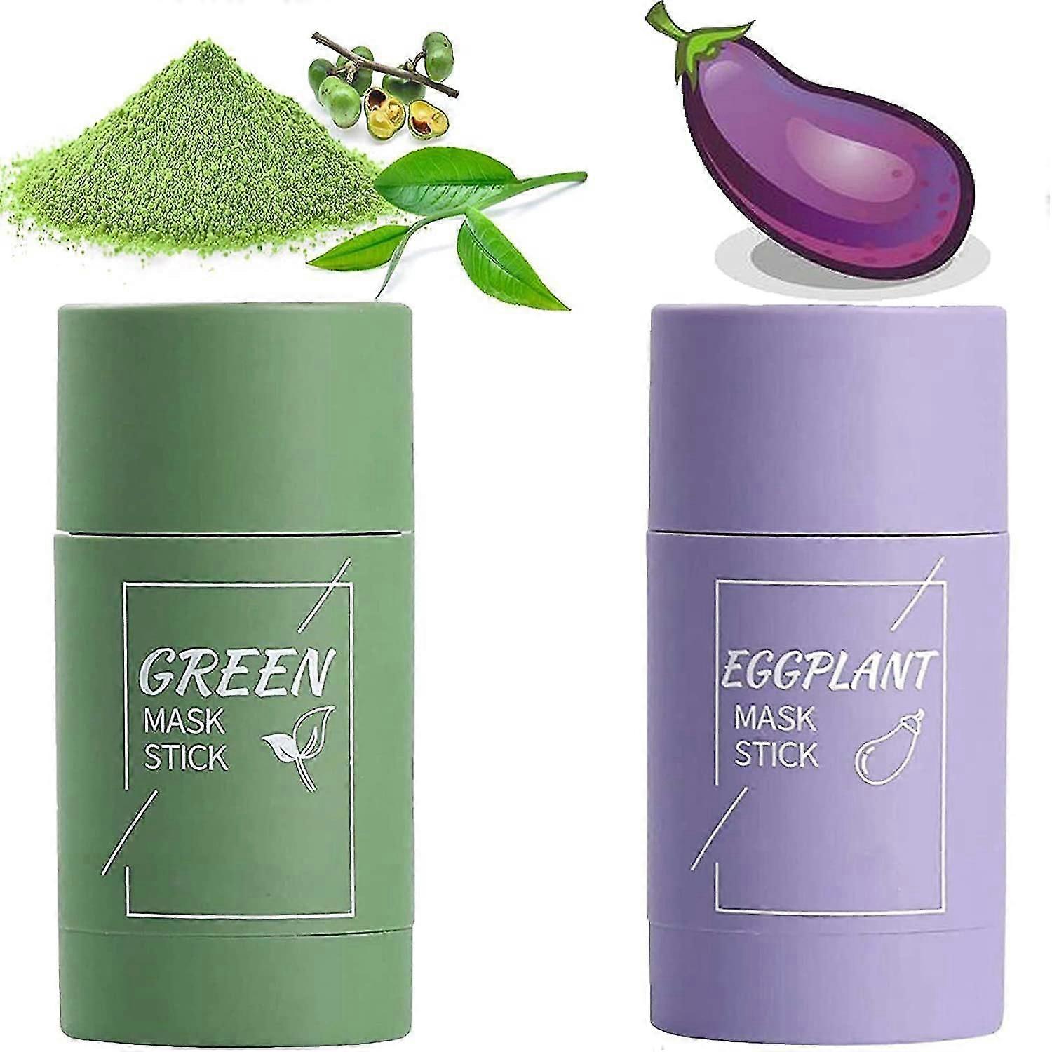 2 Pcs Green Tea/eggplant Green Tea Mask Solid Face Cleansing Mask Stick Oil Control