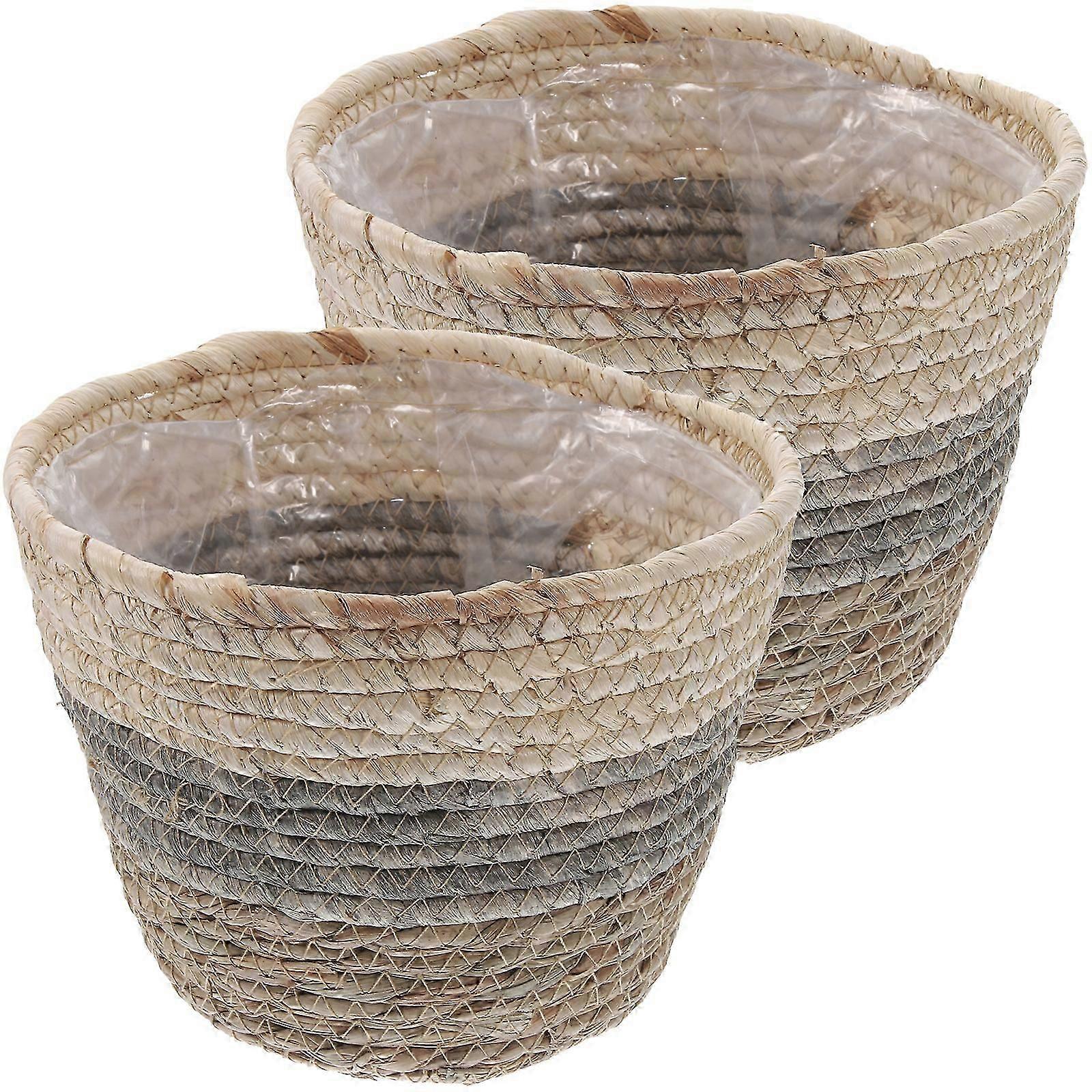 2Pcs Weaving Straw Flower Baskets Plant Container Woven Baskets Planters for Desktop