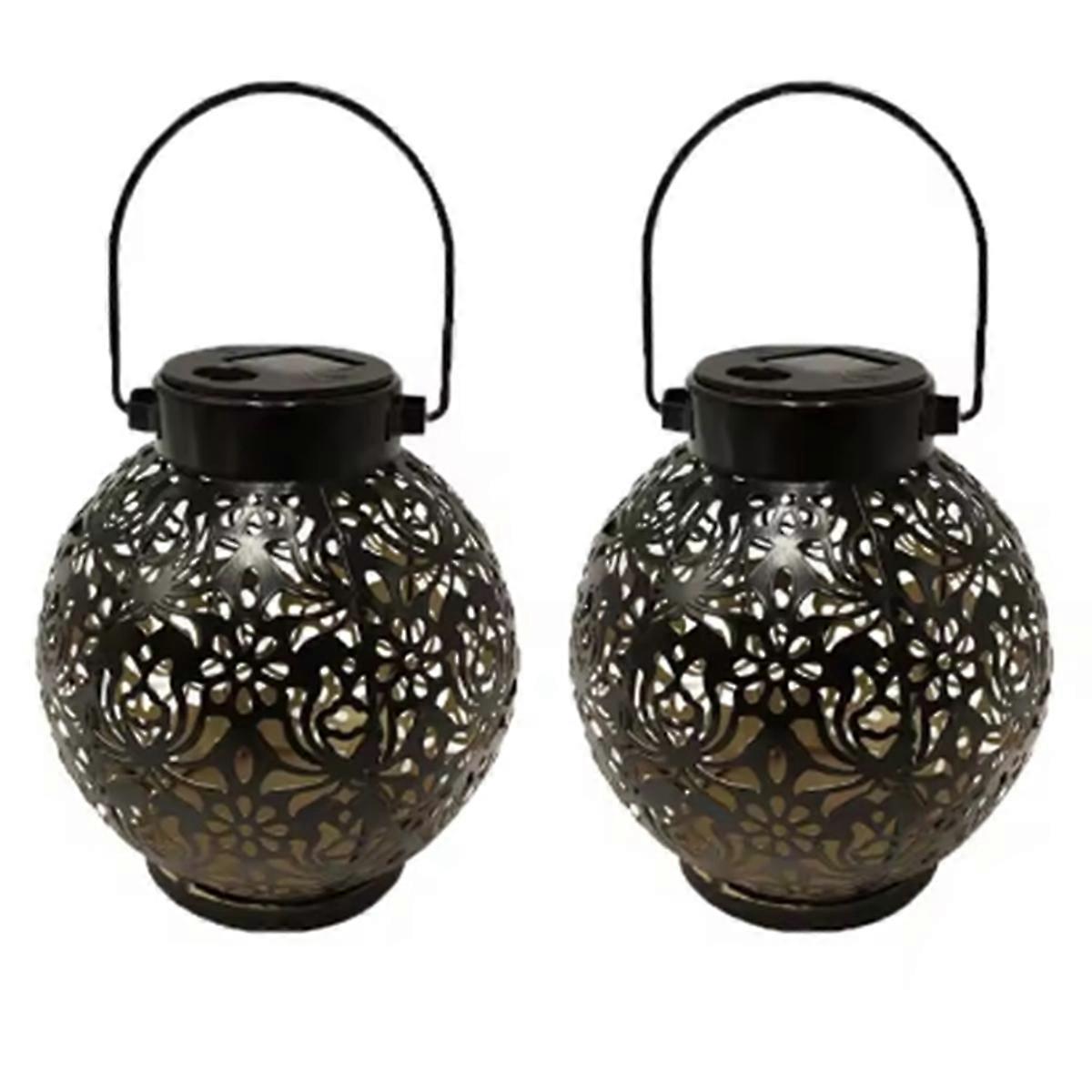 2Pcs Waterproof Solar Lanterns Outdoor Moroccan Metal Hanging Lights for Garden Patio Porch Backyard Decoration Black