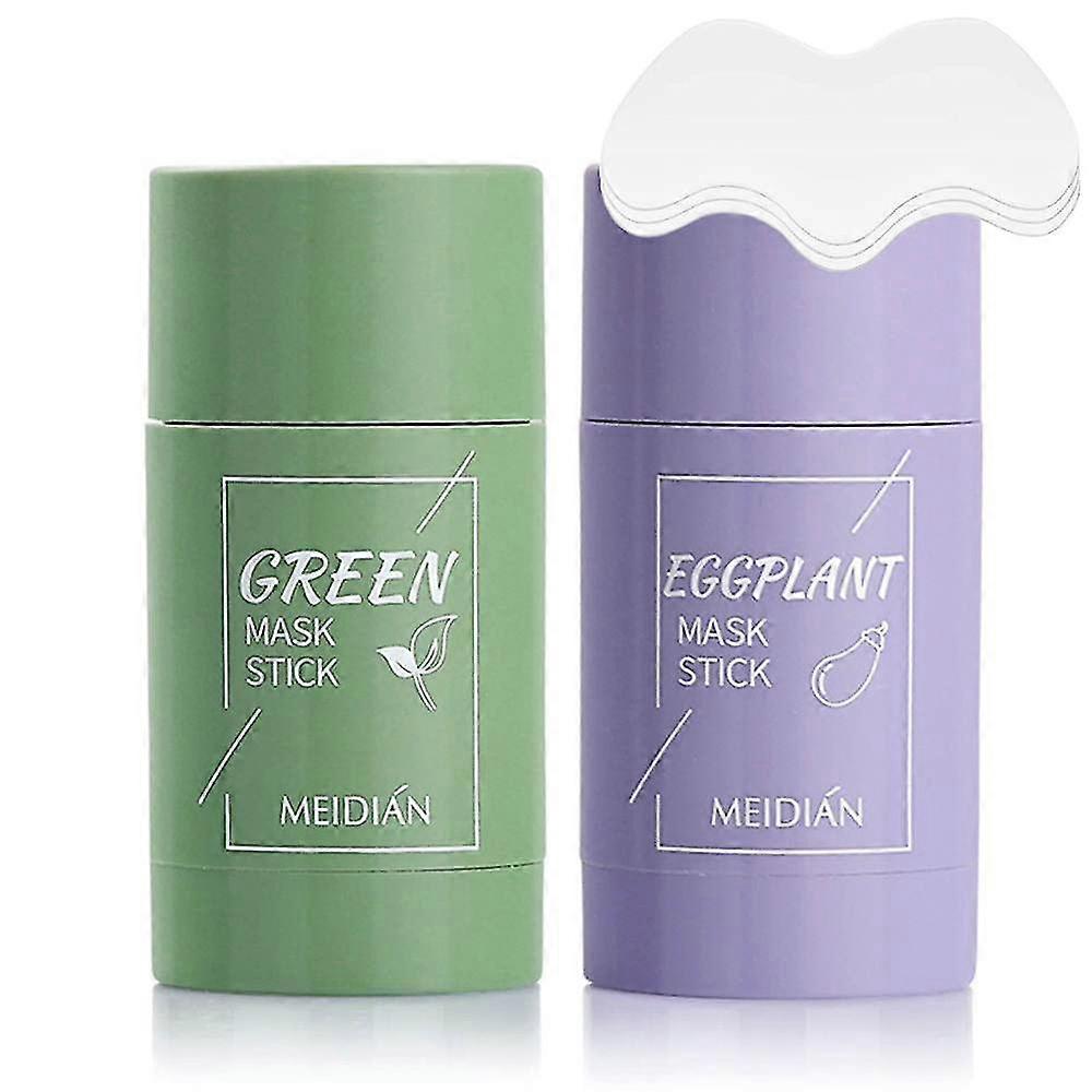 2pcs - Green Tea Purifying Clay Stick Mask, Eggplant Face Mask Stick, Blackheads Remover,oil Control,moisturizing, Suitable For All Skin Types But Sen