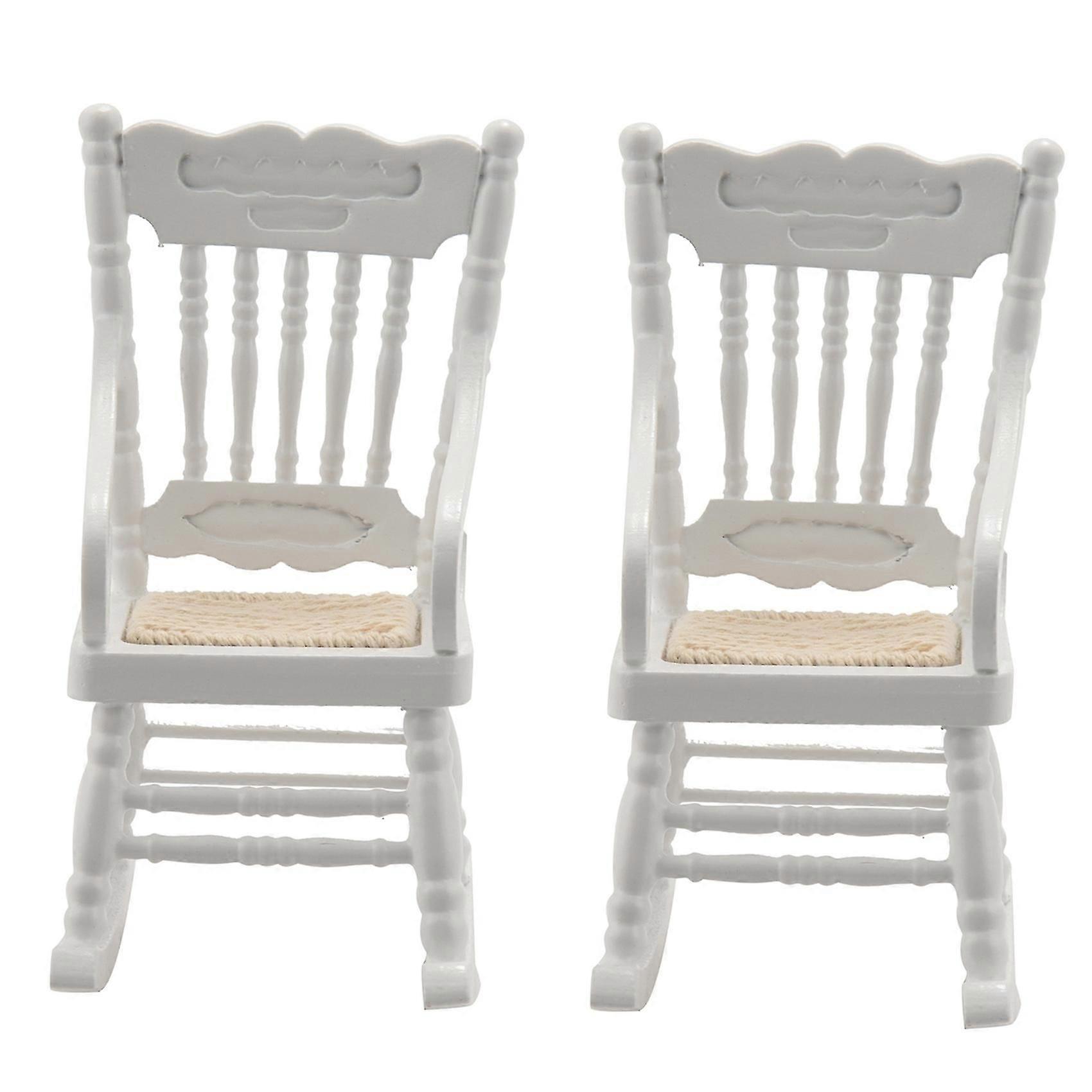 2 Pcs 1:12 Toy Miniature Furniture Wooden Rocking Chairs Toy Accessories For Doll House Decoration