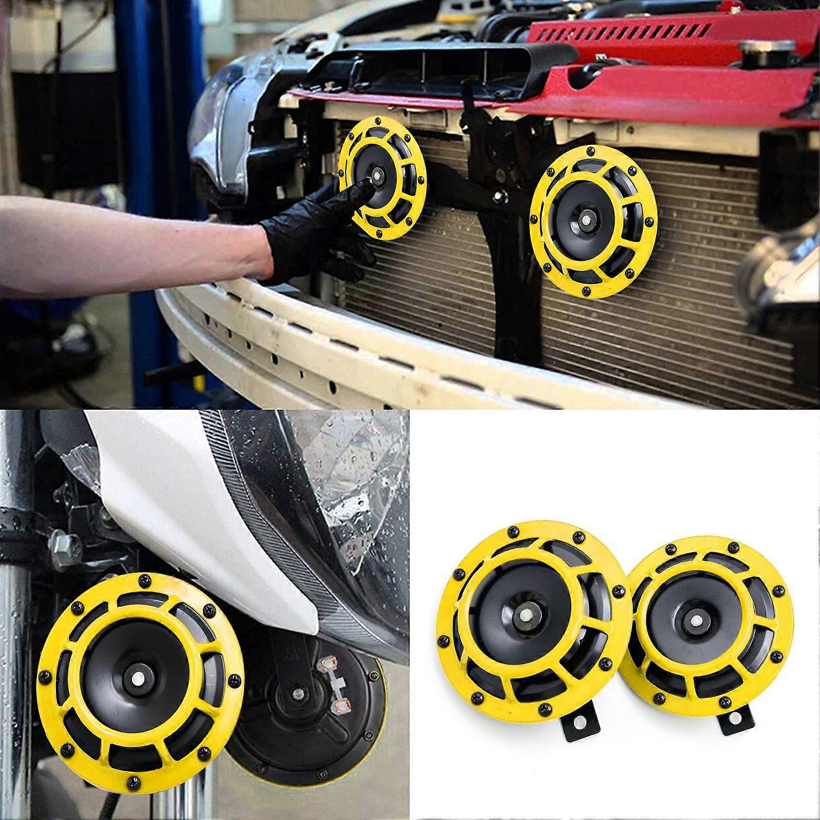 2Pcs 125mm 12V Electric Car Horn Super Loud High Tone Low Tone Twin Horn Kit with Protective Grill for Motorcycles Cars MK2267