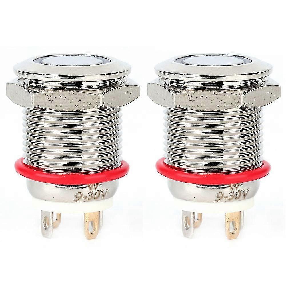 2 Pcs 12mm 4 Pin Self reset Metal Button Switch with LED Light IP65 Switch(White 100~240V)