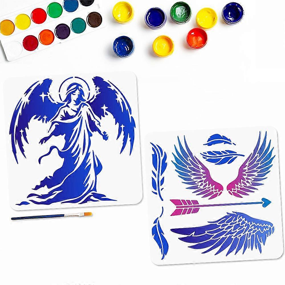 2Pcs 2 Styles PET Hollow Out Drawing Painting Stencils for DIY Scrapbook Photo Album Angel & Fairy 300x300mm 1pc/style