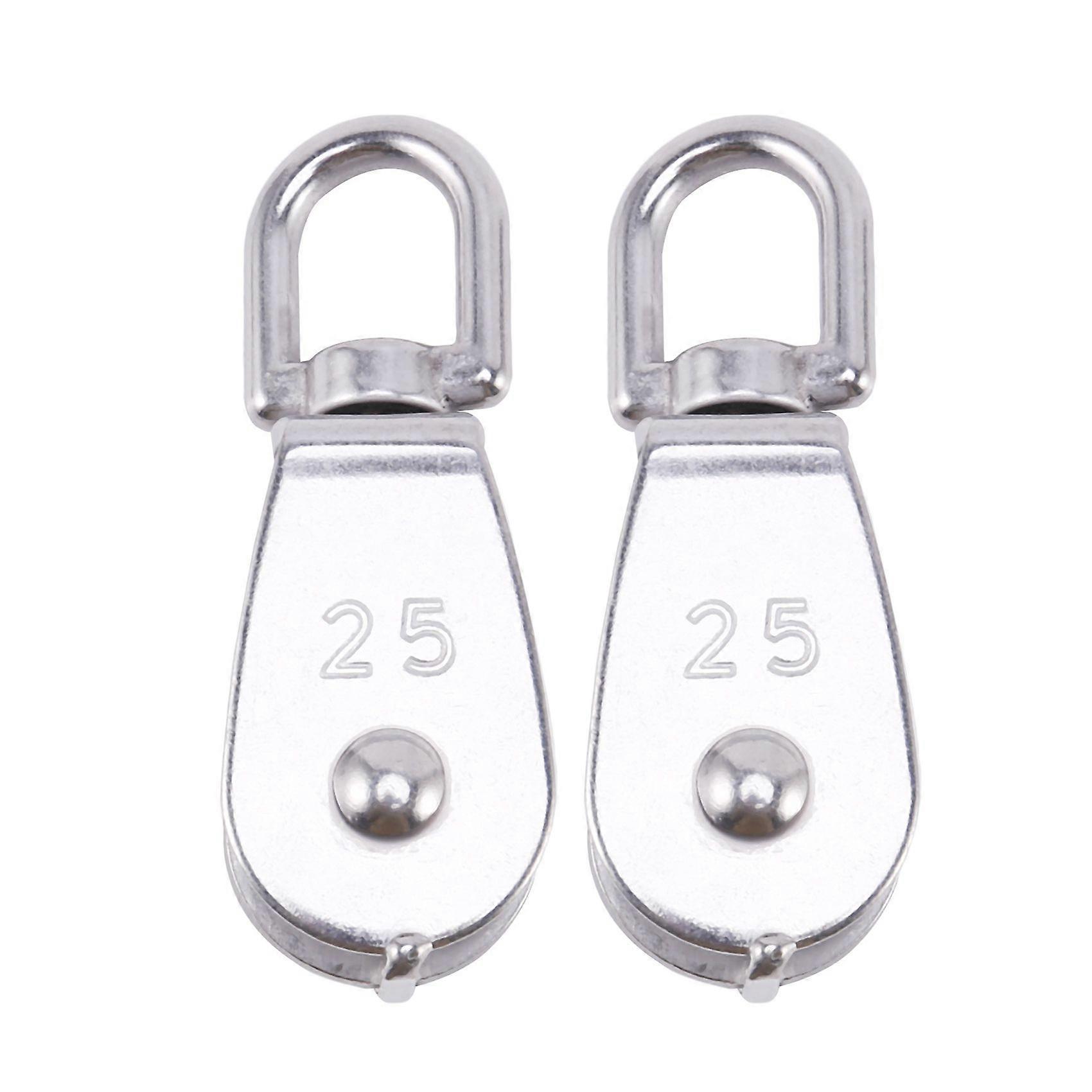 2Pcs 25MM Single Pulley Block in 304 Stainless Steel M25 Pulley Roller Loading 400kg - Silver