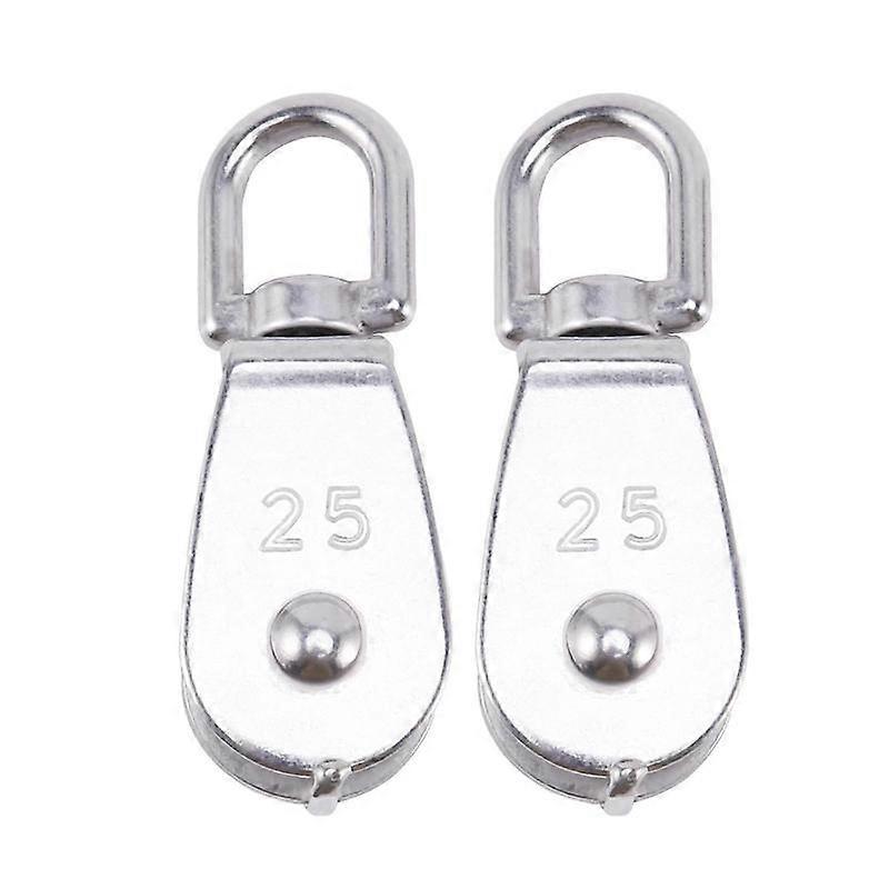 2Pcs 25MM Single Pulley Block in 304 Stainless Steel M25 Pulley Roller Loading 400kg - Silver