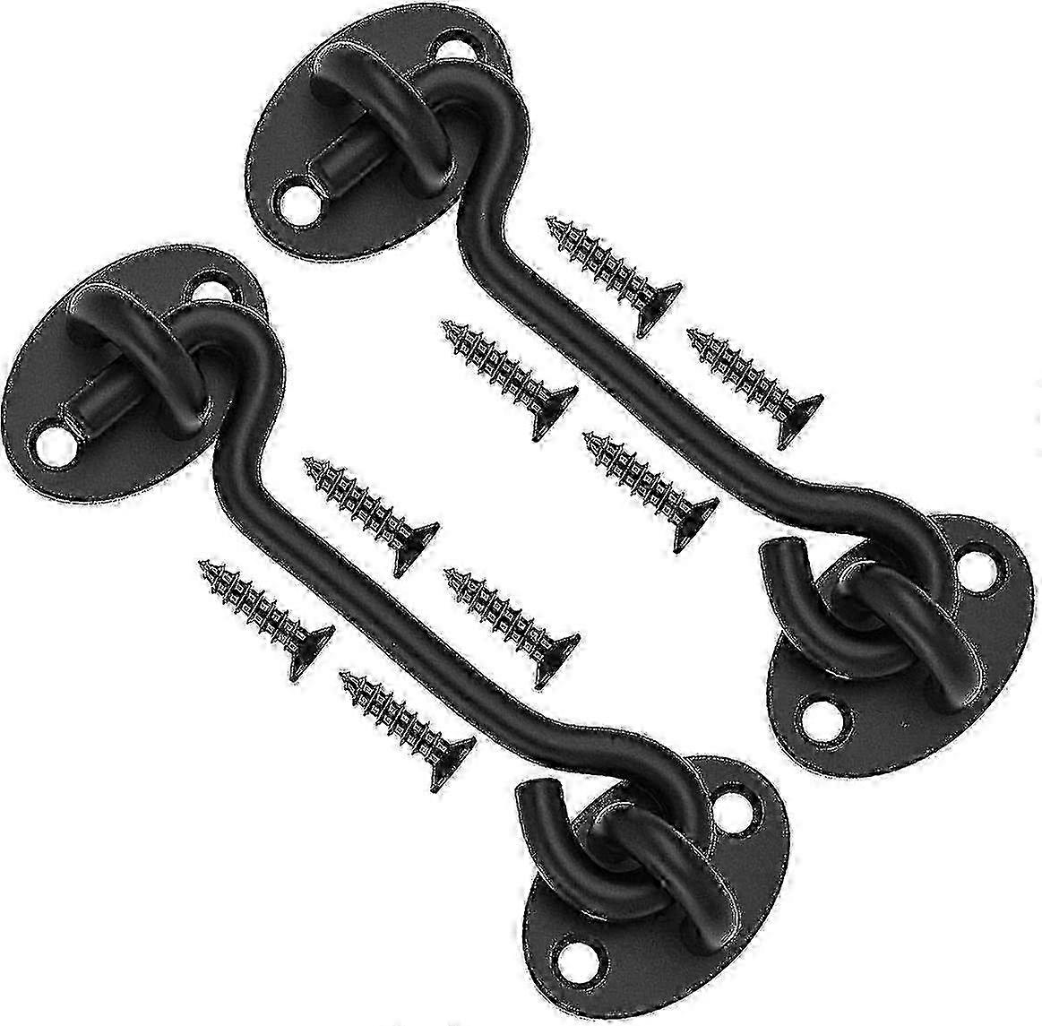 2 Pieces 3 Inch Stainless Steel Black Wind Hook Thickened Vintage Window Hook Accessories Door And Window Hook FG05 2 Pcs Gate Latch Durable for a long time: the barn door latch is made of hard stainless steel 304 which coated with a rust-proof black powder to solve the problem of rust and cracking. It does not break and fall off under gravity impact, its safe and durable. you don't have to worry about rusting or breaking, and they work long hours even in rainy and snowy weather to keep you safeExquisite craftsmanship: precise positioning of the drilling, these accessories ensure the life of the entire barn doorAdd extra security and privacy to every corner of your house. the door lock will not automatically lock or unlock, Comfortable feel and simply unlock design allow you to unlock quickly without looking for keys everywhere. this door lock can make you quickly and easily unlock, bringing you a sense of security.Perfect Design: adapt to the changing style of home decoration design, whether it is modern, rural, retro, fashion, rough style can be integrated. Can be used for any interior space, such as a garage, storage room, bathroom, kitchen cabinets, laundry, cloakroom closet, or some high mobility area partitionsEasy to install: easy to install, detachable and reusable, including accessory screws, no need for slotting and experienced wooden door installation master, saving time and effortKeep Safe & Privacy barn door lock latch designed for security applications to protect pets and kids who cannot sneak out from the room, provide extra security and privacy to every corner of your house.