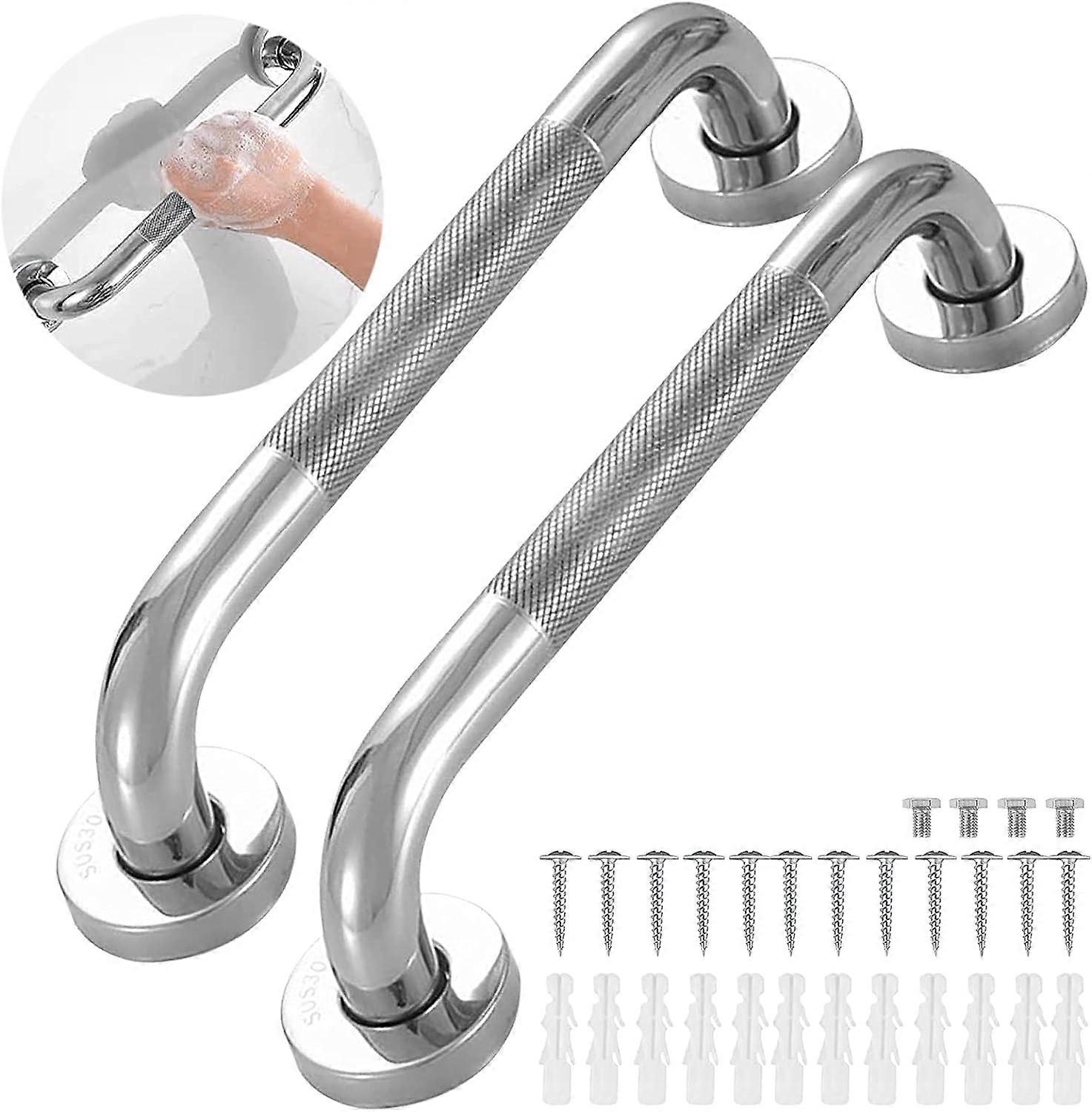 2 Pcs 304 Stainless Steel Bathroom Grab Bar, Chrome Stainless Steel Rails Bathroom Grab Bar Anti Slip Shower Handle, Safety Shower Handle Toilet Grab