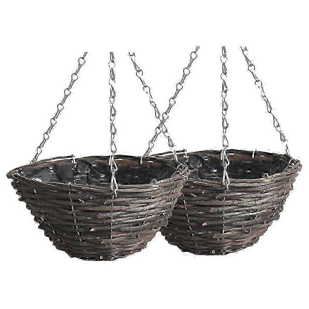 2Pcs 30cm Hanging Flowerpot Handmade Rattan Planter Hanging Basket For Home Balcony Decoration