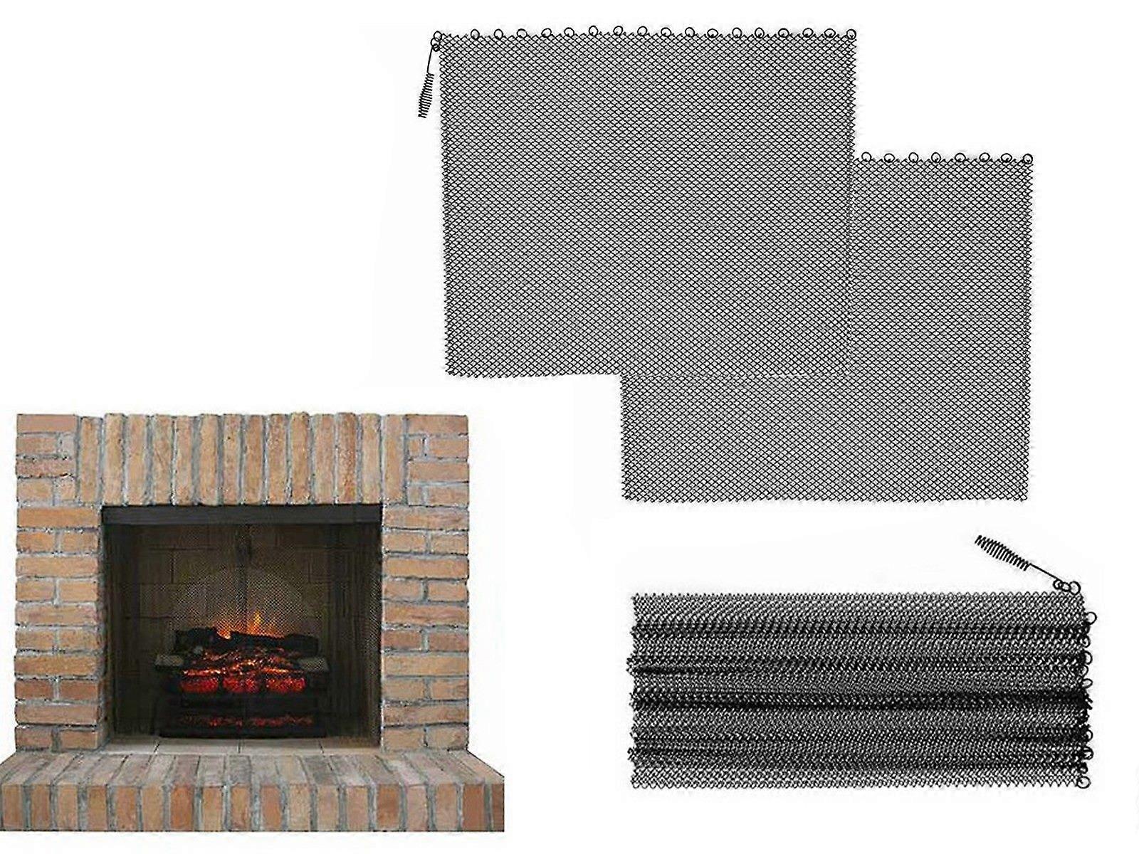 2Pcs 61x53.3cm Folding Mesh Fireplace Screen Stainless Steel Fire Spark Guard