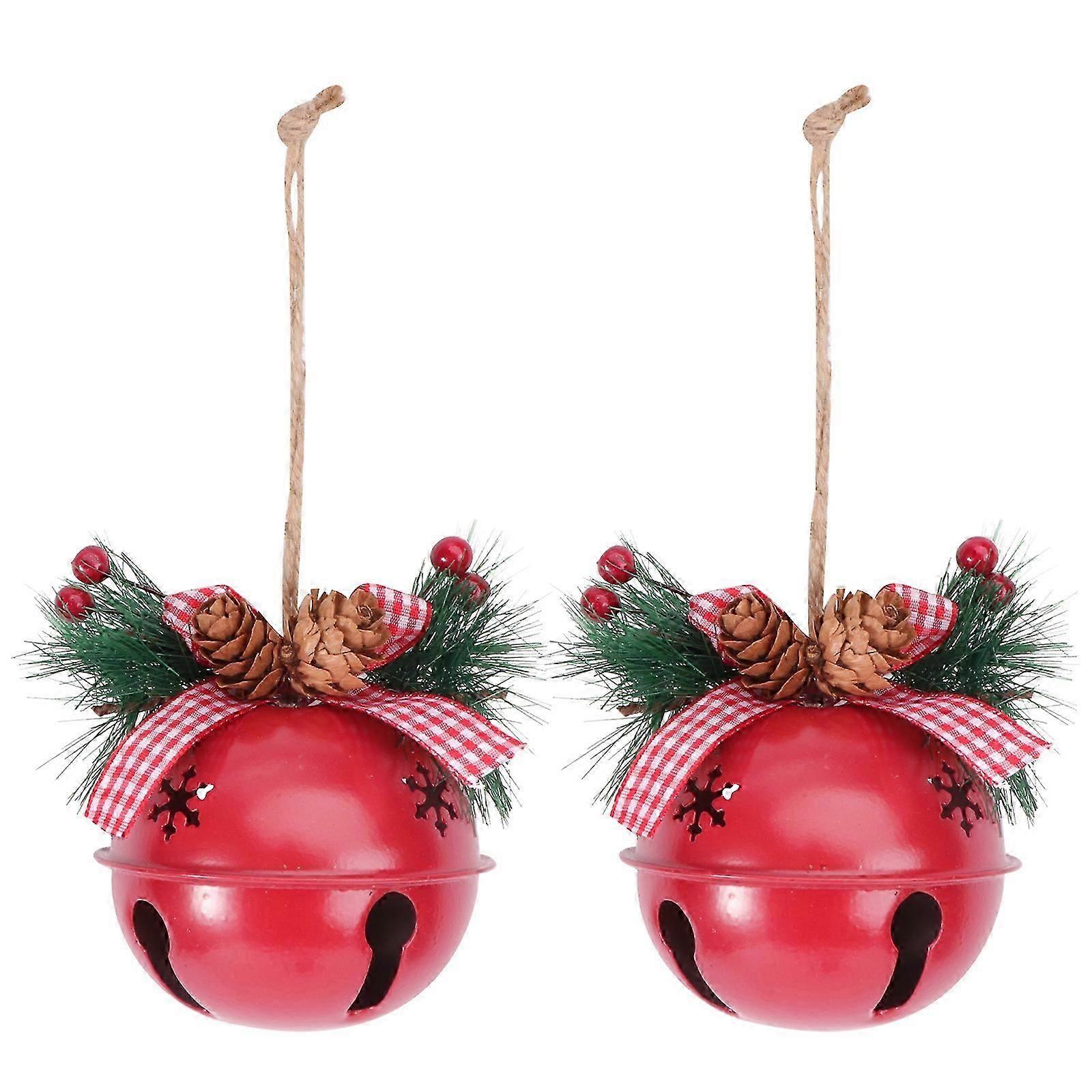 2Pcs 8cm Christmas Tree Decoration Painted Iron Bell Christmas Holiday Home Decoration(Red)