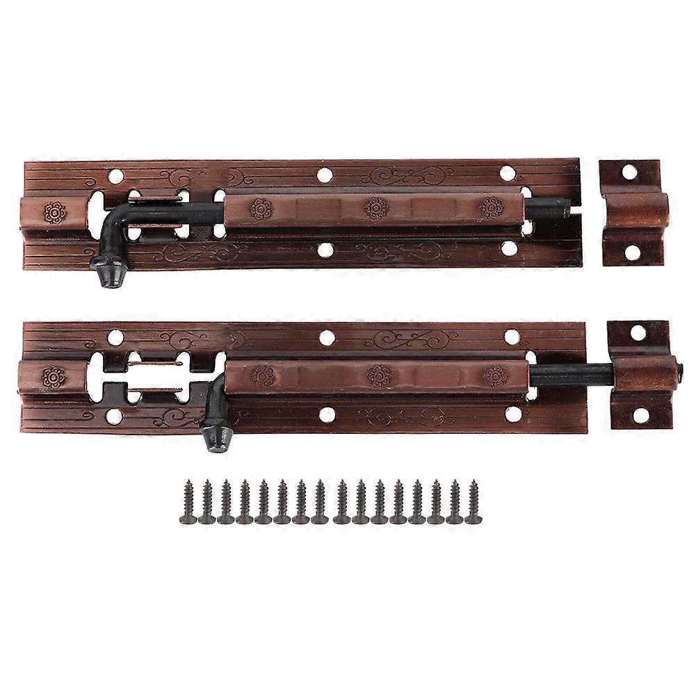 Features: 1Great for either side installation that means the bolt can be used on vertical horizontal left or right hand applications. 2Can securely close the door or window to make sure your security and privacy close the door in the garden to prevent the dog from running out or close the cabinet to prevent children from taking things. 3Suitable for use in doors wooden doors window boxes cabinets fences kennels bathrooms toilets bars and many other places. 4Exquisite workmanship the surface is polished smooth and neat smoother than ordinary hardware easy to use. 5Made of highquality iron and bronze plating material it is not easy to oxidize and has strong corrosion resistance. Specification: Condition: 100% Brand NewItem Type: Door LatchMaterial: Iron + Bronze PlatingColor: As shown in the pictureSize: Approx.14.5x3cm/5.7x1.2inWeight: Approx.158g/5.6oz Package List: 1 x Set of Door Latch(2 x Door Bolt2 x Accessories 16 x Screw) Note: 1.Pleaseallow1‑2cmerrorduetomanualmeasurement.Thanksforyourunderstanding.2.Monitorsarenotcalibratedsameitemcolordisplayedinphotosmaybeshowingslightlydifferentfromtherealobject.Pleasetaketherealoneasstandard.