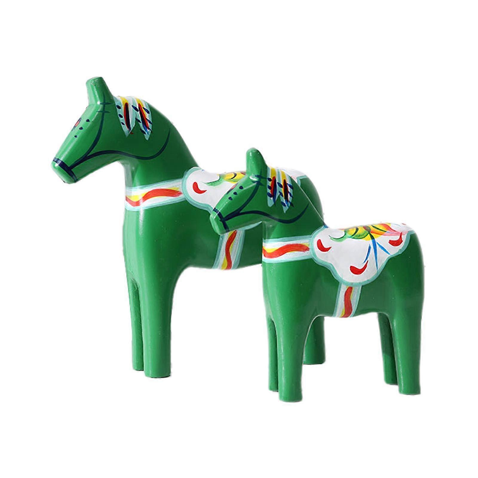 2Pcs Dalecarlian Wooden Horse Decorating Novelty Swedish Dala Horse Statues green