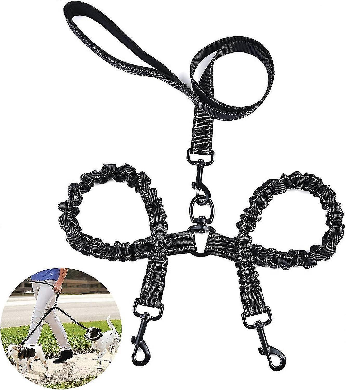 Double Dog Leash For 2 Dogs Large Dog Leash Portable Bite Resistant Elastic Leash Black