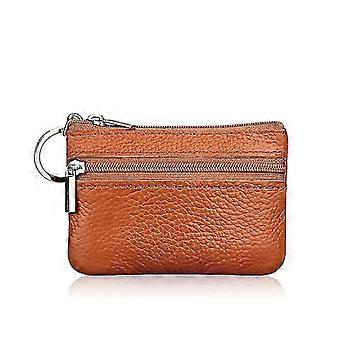2 Layers Unisex Women Men Leather Zipper Coin Card Key Pouch Small Mini Wallet Purse