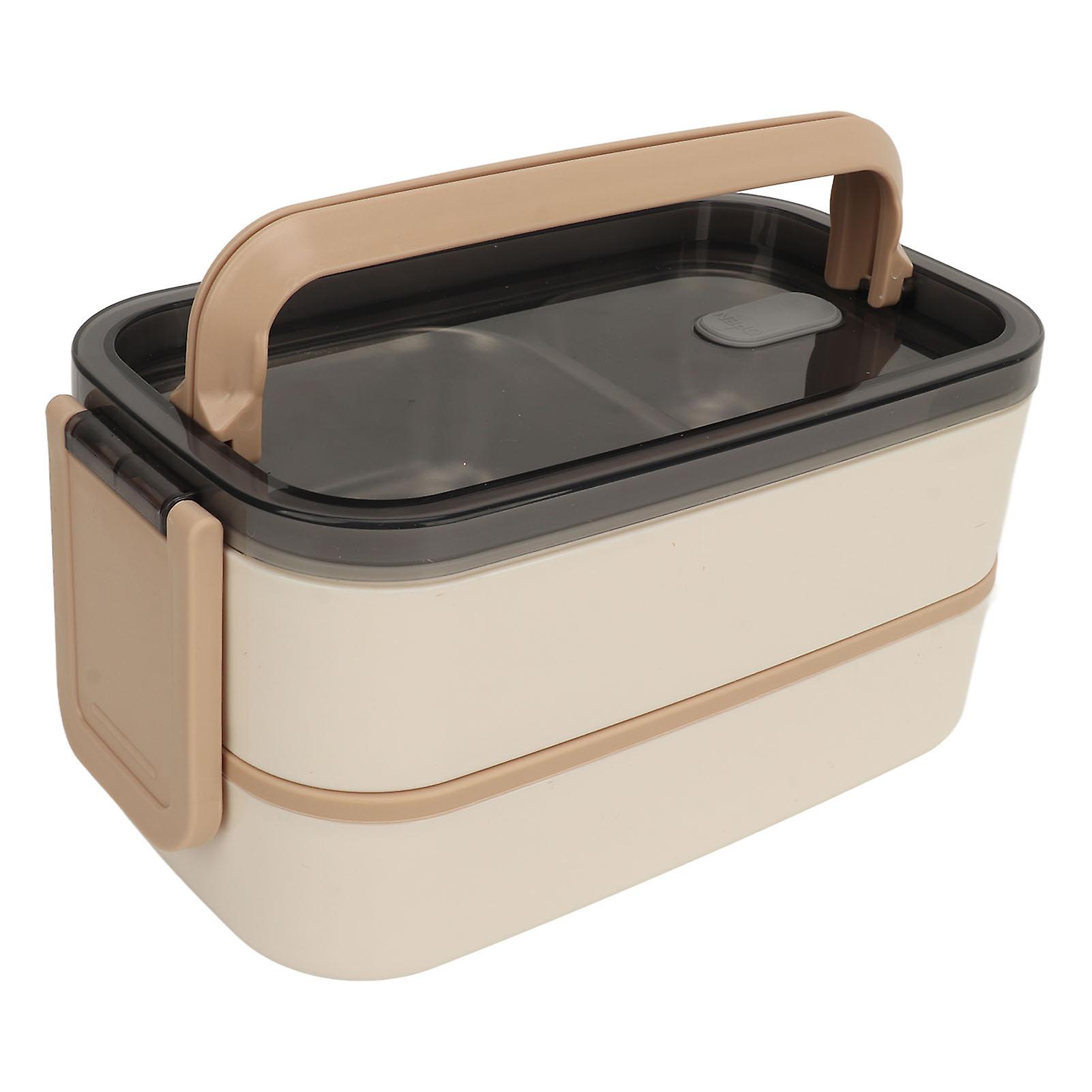 Double-layered lunch box stackable Bento box with cutlery Stainless steel Lunch box 1400ml Khaki 304
