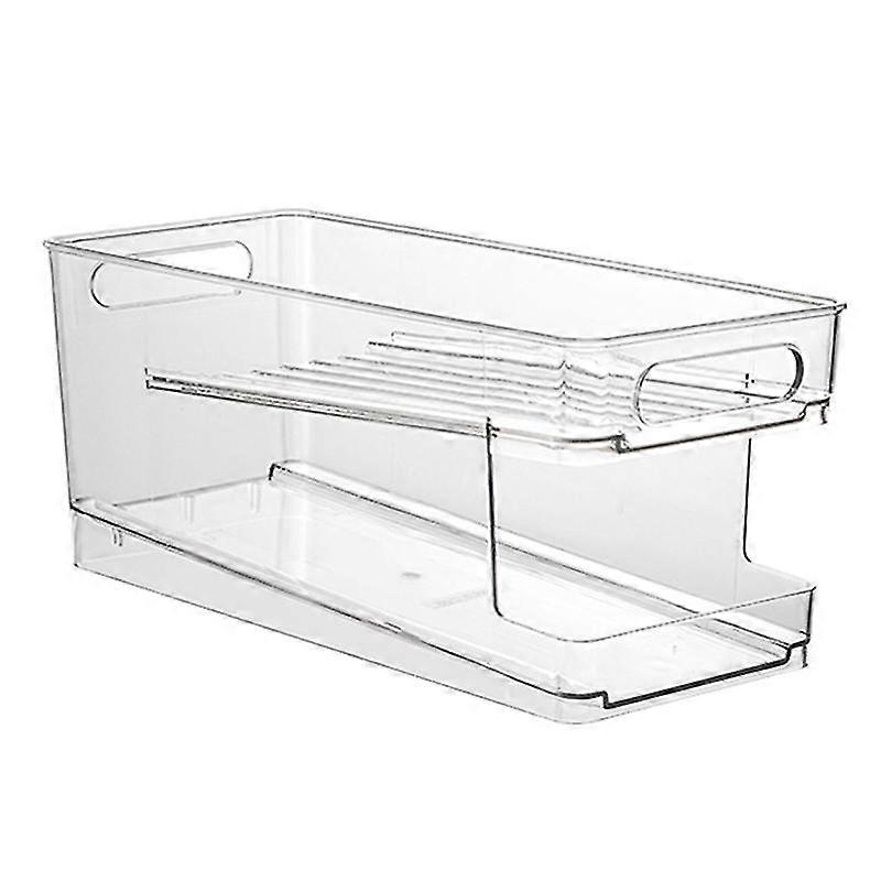 2 Tier Refrigerator Storage Box Rolling Clear Organizer Container Cabinet For Home Kitchen Refrigerators Cola Soda Canned Beer Self-Falling Rack