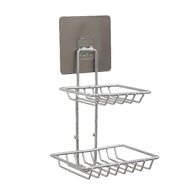 2 Tier Wall Mounted Soap Dish Stainless Steel Sponge Shelf Self Adhesive Suction Cup Bathroom Accessories