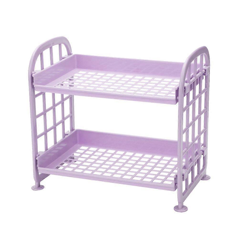 2 Layers Assemble Kitchen Desktop Living Room Plastic Finishing Shelf Bathroom Countertop Toilet Storage Shelf Organizer(Purple)