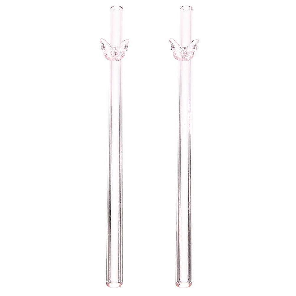 2pcs Reusable Glass Straws: Clear Glass Butterfly Design Long Drinking Straws Charm for Milk Coffee Beverages Cocktails Pink