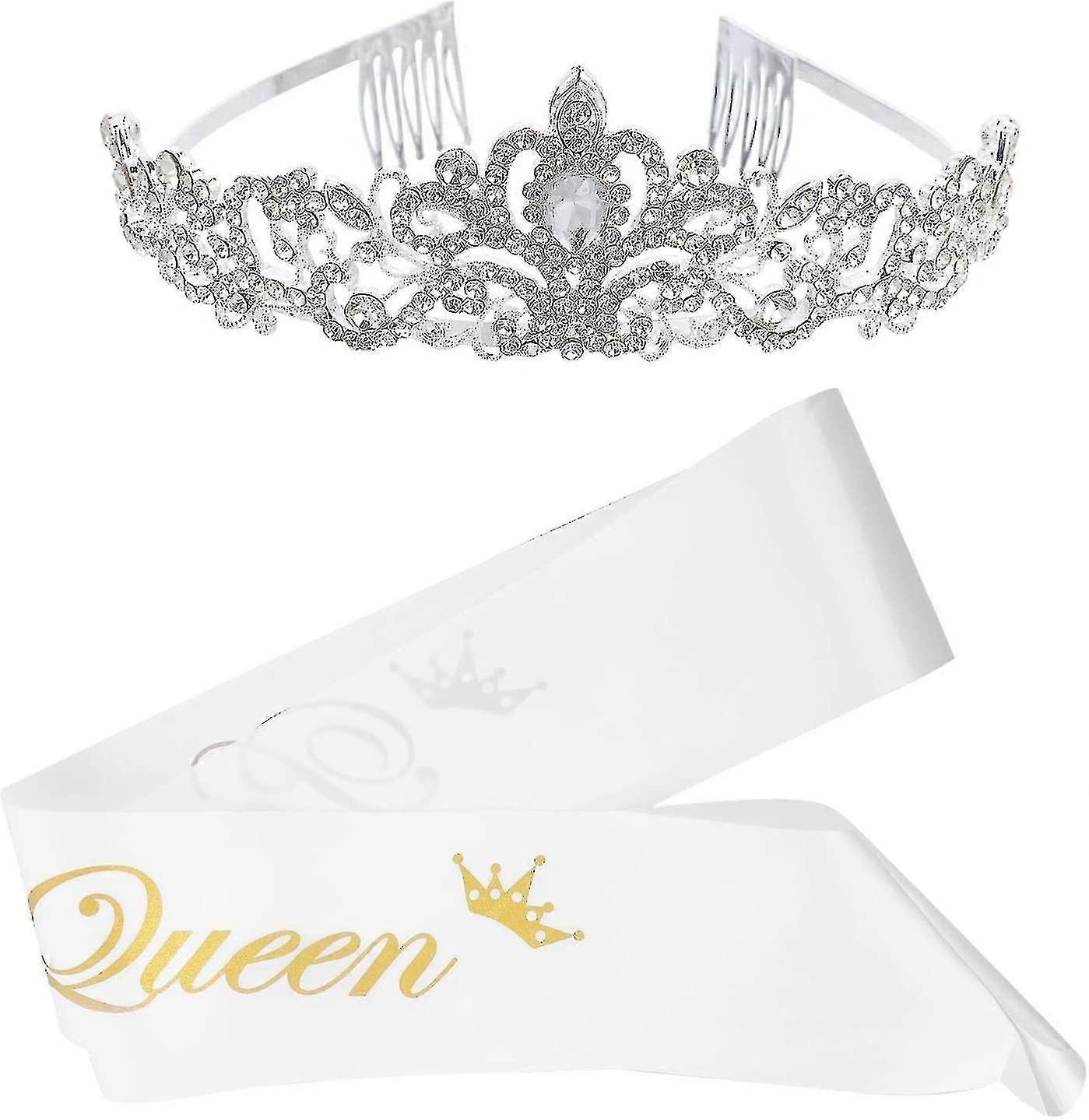 2pcs Prom Queen Sash And Tiara Set Rhinestone Crystal Tiara Crown