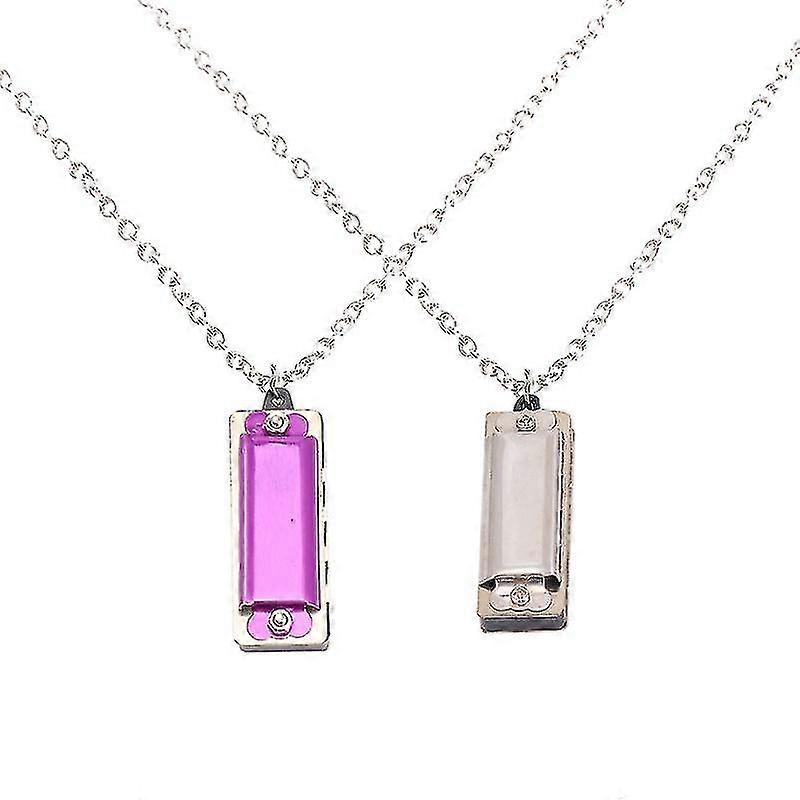 2pcs Double Row 4 Holes 8 Tone Harmonica Music Instrument Educational Music Toy For Beginner Students Kids (purple + Silver)
