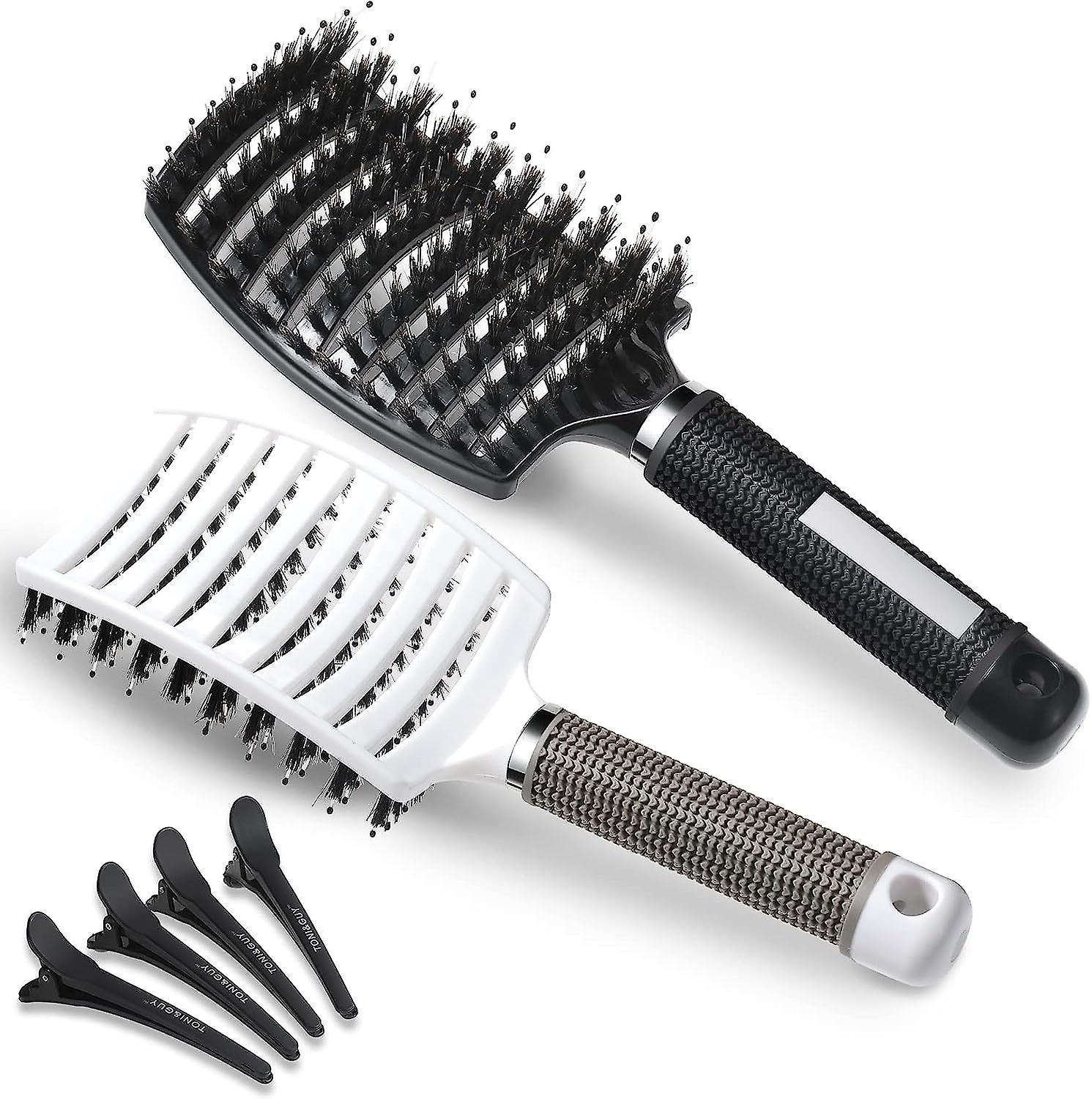 2 pieces hair brush, wild boar bristles with 4 pieces hair clip. Brush for thin hair, hair brush for women and men, hairstyle aid