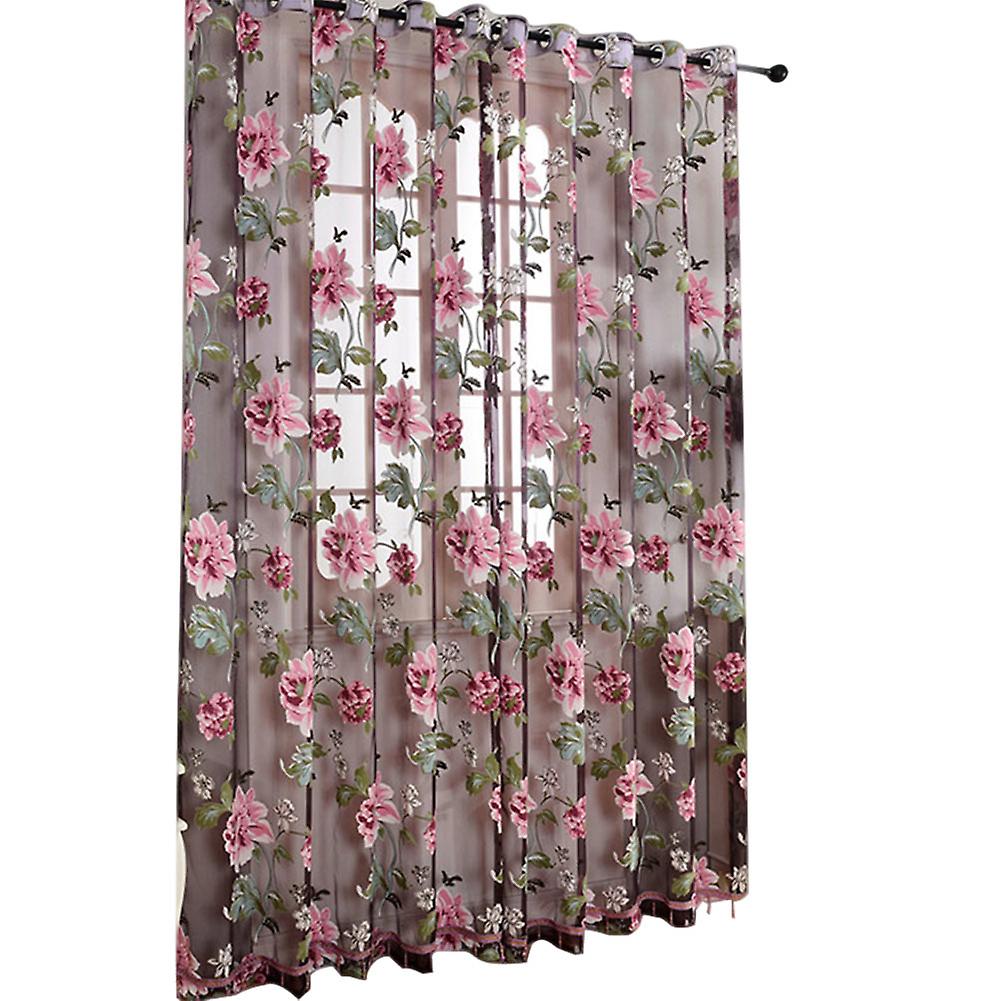 2Pcs Window Curtain Transparent Peony Flower Windows Panel Balcony Living Room Bathroom Bedroom Curtains Home Decoration
