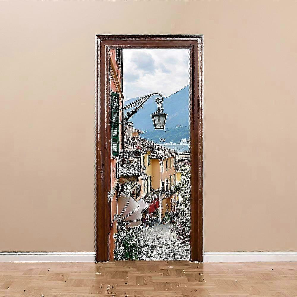 2 Pieces Door Sticker Modern Art Oldtown 3D for Home Decor 30.3x78.7 (77x200 cm)
