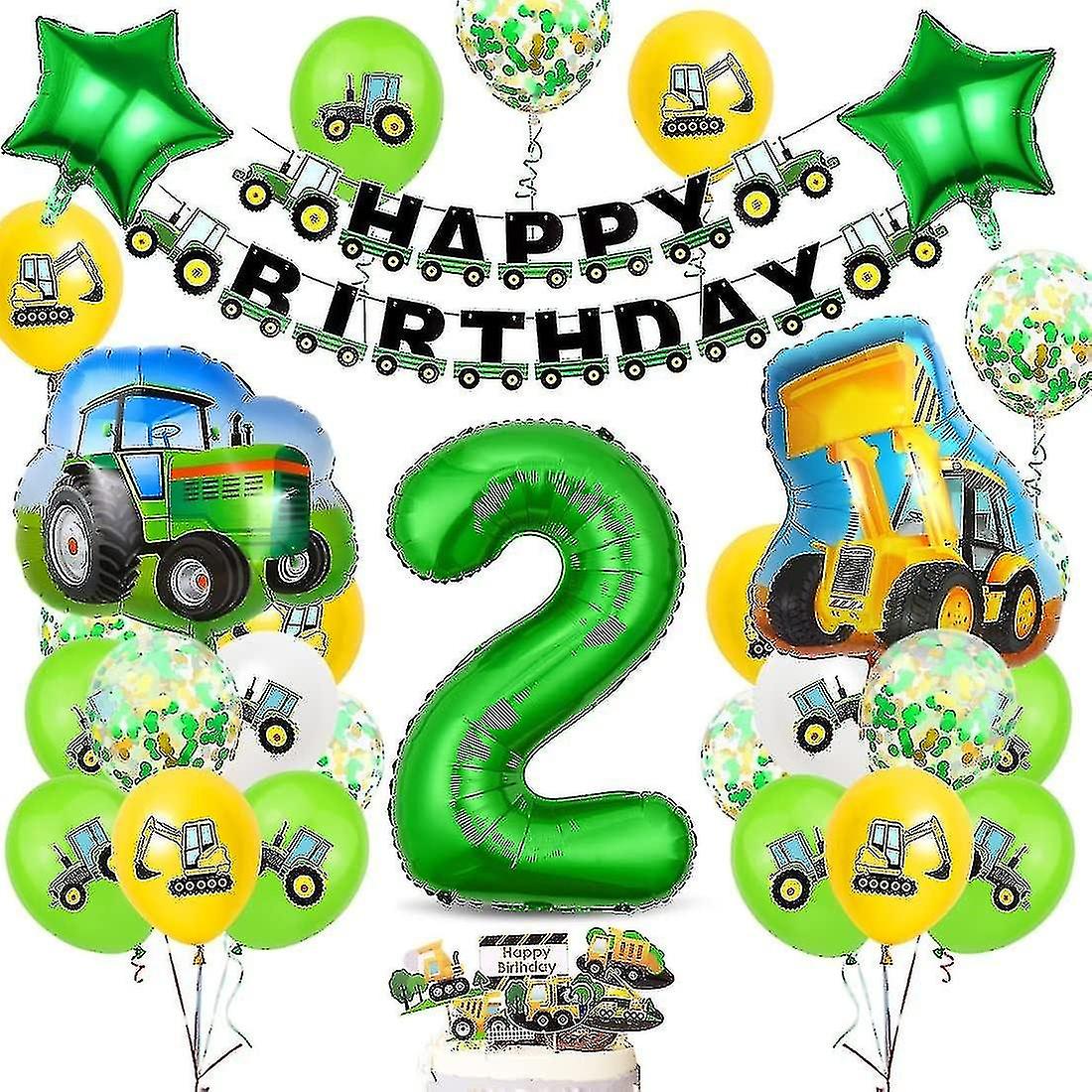 Tractor Birthday Decoration For 2 Years Boys - Green Foil Balloon Decor [xh]-yezi