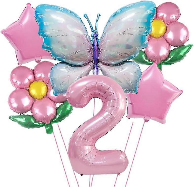 2nd Birthday Decoration Butterfly Balloons,Pink Blue Butterfly Fairy Flower Foil Balloons for Girls 2nd Birthday Party Decoration Baby Shower Supplies