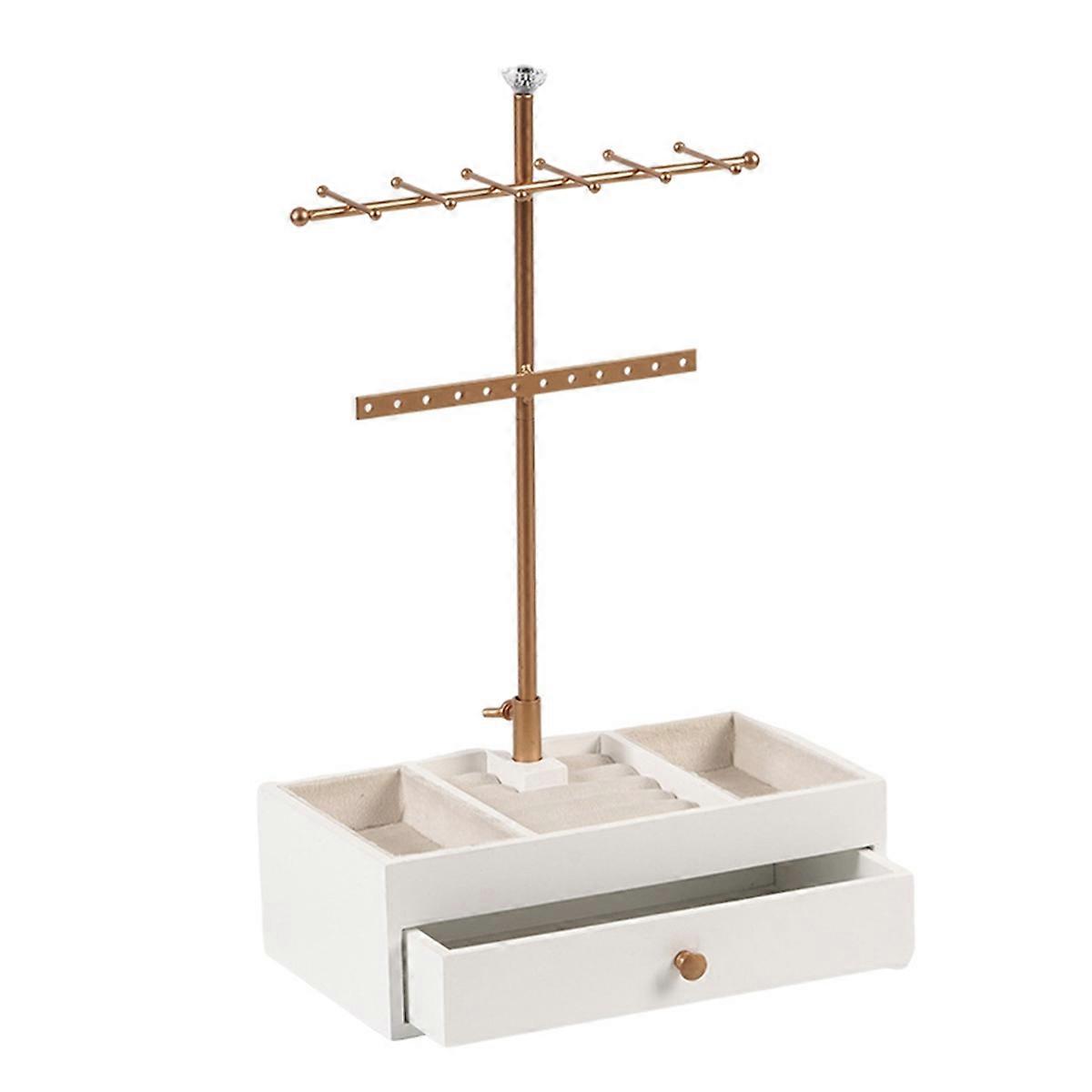 2 Tiers Jewelry Rack Wooden Emerald Base Ring Jewelry Storage A