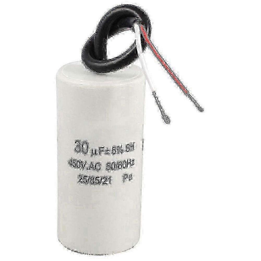 Product FeaturesProduct Name : Motor Capacitor;Housing Material : Plastic;Dielectric Material : PolypropyleneModel : CBB60;Capacitance : 30uF;Tolerance : 5%Rated Voltage : 450VAC;Frequency : 50/60Hz;Body Size : 4.4 x 9.2cm / 1.7inch x 3.6inch (D x H)Wire Size(.) : 20 x 0.6cm / 7.9inch x 0.24inch (L x Max.D);Color : White, Black,Weight : 163g;Features 2-wire cord, polypropylene film, it is non capacitor, widely used in washing machine for better starting and working motor.It is applicable for the starting and running of AC motor with 50/60Hz frequency.Package Content : 1 x Motor Capacitor2 wireOnly the above package content, other products are not included.Note: Light reflection and different displays may cause the color of the item in the picture a little different from the real thing. The measurement allowed error is 1-3cm. Note: Due to the light and screen setting difference, the item's color may be slightly different from the pictures. Please allow slight dimension difference due to different manual measurement.