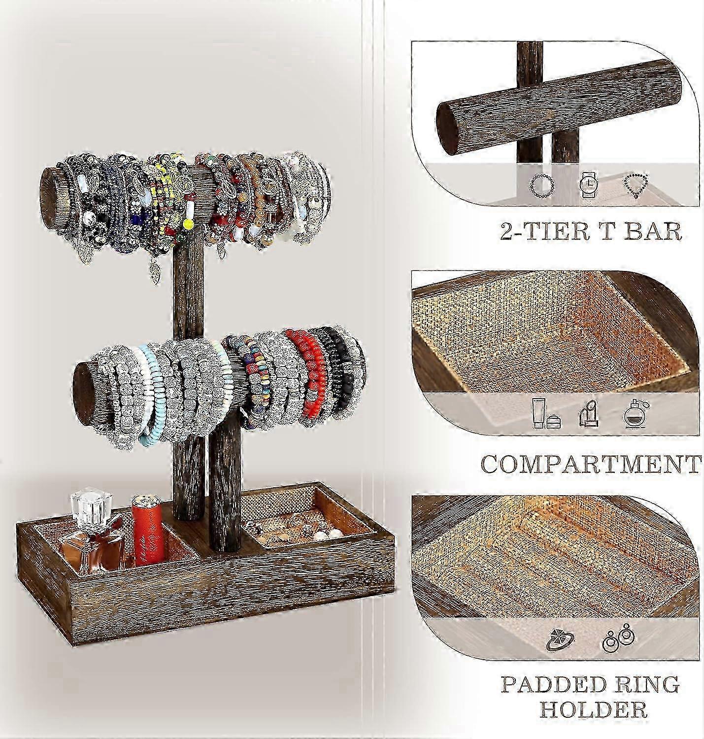 2 -storey wood exhibition jewelery accessory stand jewelery holder bracelet bracelet clock pendant storage jewelery box editor, brown