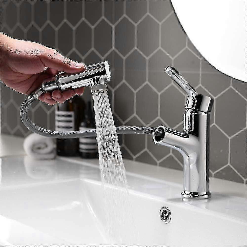 Pull-Out Spray Bathroom Sink Faucet with 2 Jets - Single Handle Basin Fixture for Kitchen Countertop Upgrade