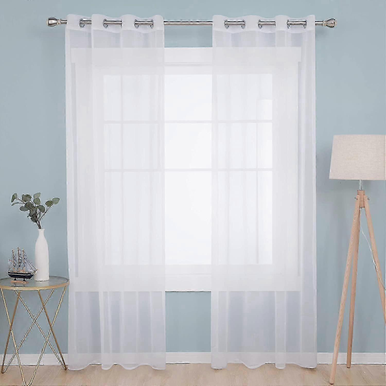2 Grommet Voile Curtains Set - Sheer Modern Kitchen Window Door Living Room 132x242cm White