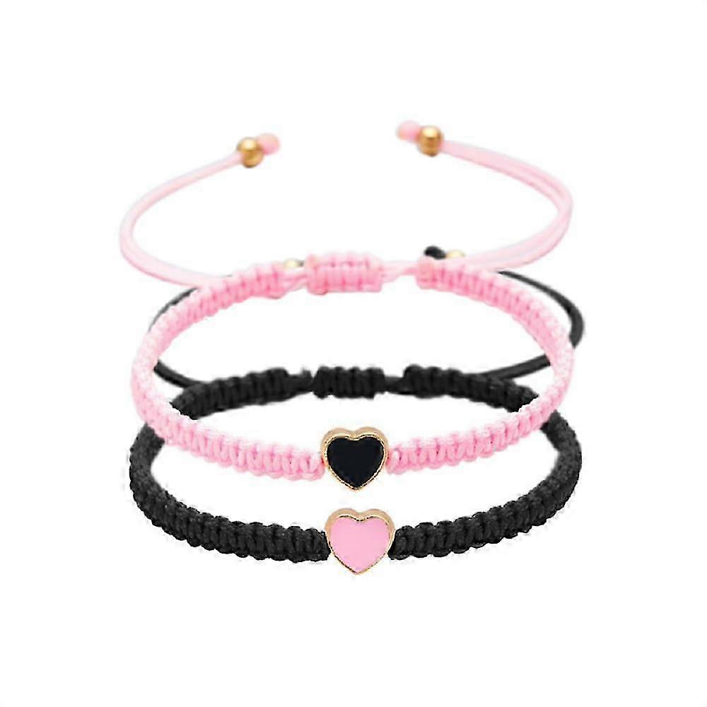 2 Sets Colorful Heart Beaded Matching Bracelets Adjustable for Couples Friendships 2025