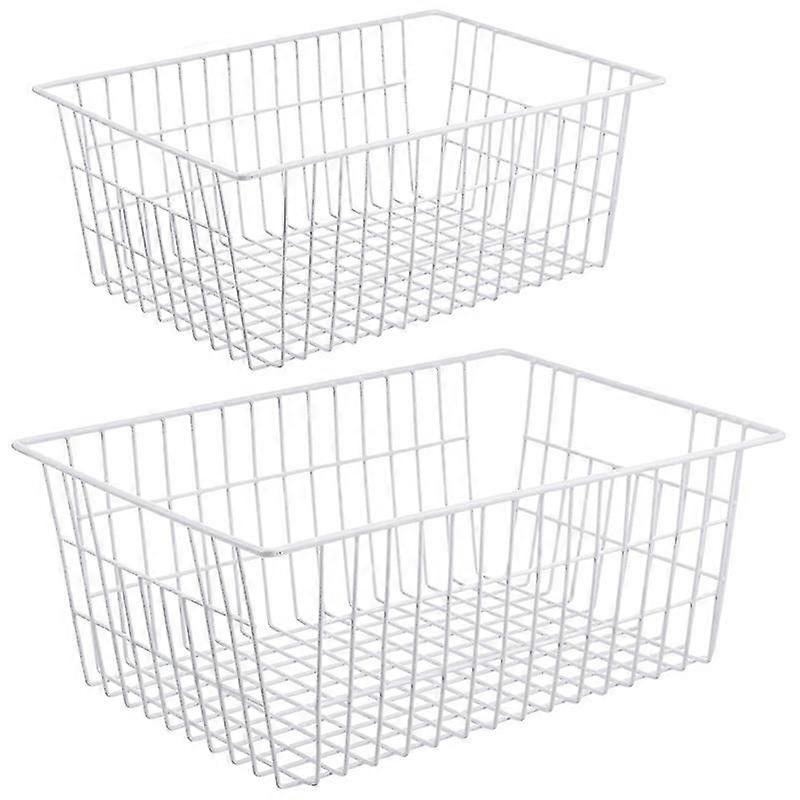 2 Pack Wire Storage Baskets, Farmhouse Metal Wire Basket Freezer Storage Organizer Bins With Handle (haoyi