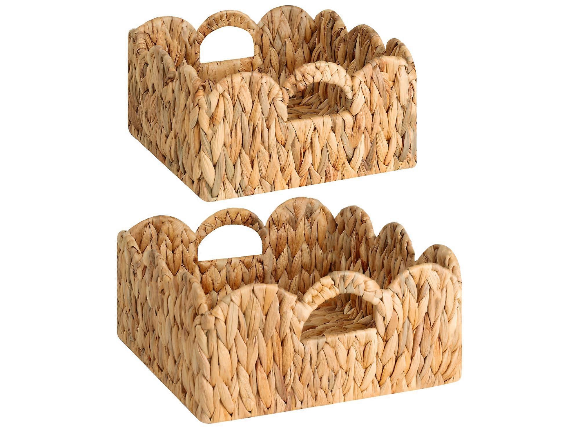 2 Pack Hand-Woven Water Hyacinth Storage Baskets for Home Organization, Decorative Natural Fiber Bins, 12 Inch
