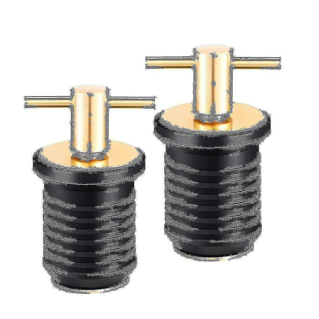 50x35x30mm, it is suitable for 1-inch hole, very convenient for you to take on boatsEasy to use: these twist drain plugs are simple to install on your boat, you just need to remove the old ones and stick the plugs in the holes, and then twist the T-handles to lock in place, the installation is simple and can be completed in a few minutesWild applications: these brass handle plugs can be applied in many occasions, you can use them on lifeboat, fish boat, ferryboat or breakwater, they can create watertight seal on your boat, and can also be helpful tools for drainingMaterial:brasscolour:Black+GoldPackage Contents:2 * drain plugOnly the above package content, other products are not included.Note: