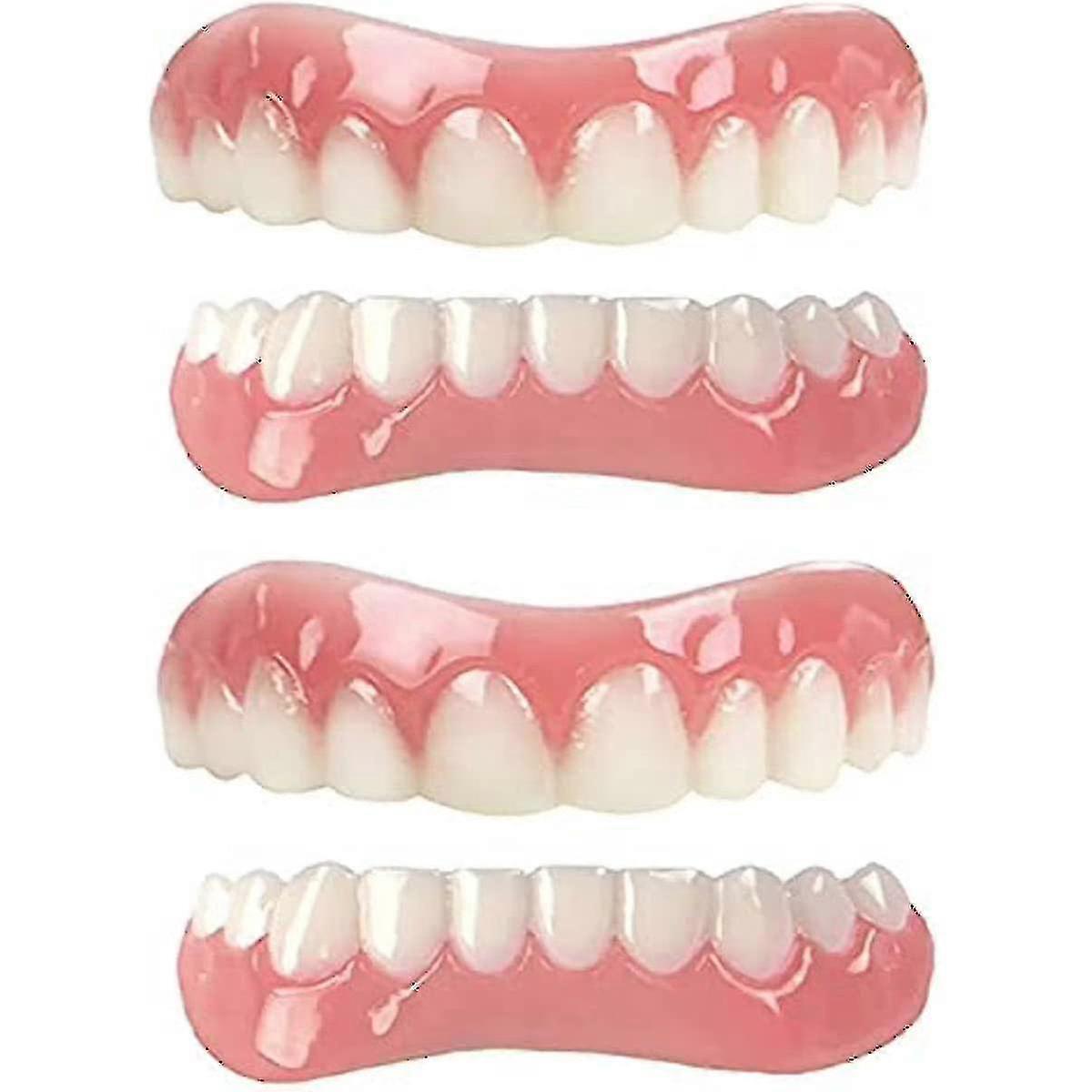 2 Pairs Dentures Cosmetic Veneer Natural Tone Instant Veneers Dental Silicone Tooth Whitening Temporary Prosthesis Teeth Top Bottom False Teeth Dental