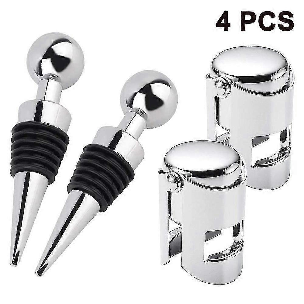 2 Wine & 2 Champagne Stoppers - Stainless Steel for Red Wine, Beer, Champagne