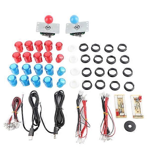 2 Player Arcade Game DIY Kit LED Illuminated Push Buttons USB Encoder for PC Games 5V (Red Blue)