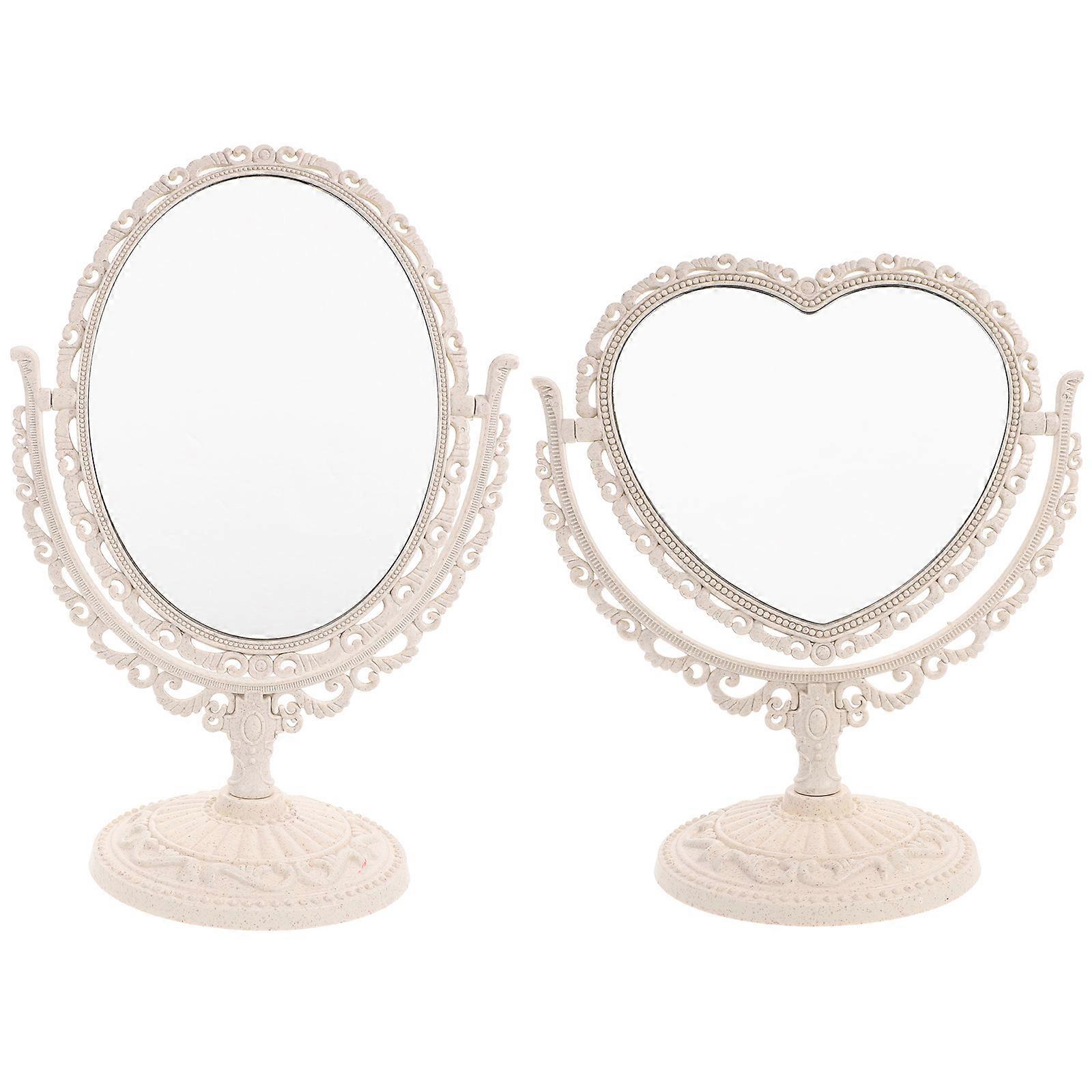 2pcs Double Sided Swivel Desktop Makeup Mirror – Standing Cosmetic Mirror for Home & Travel, Space Saving Vanity Essentials, Beige Heart Shape
