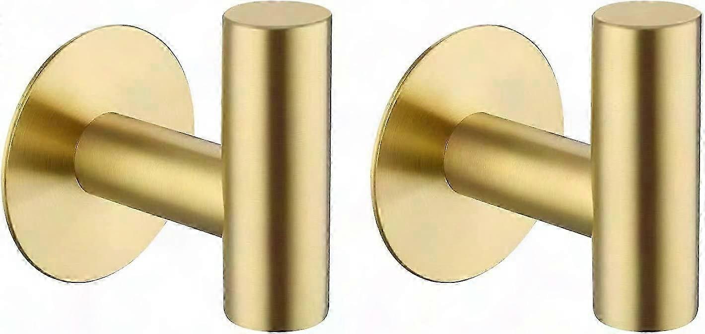 2 Pcs Brass Adhesive Towel Hooks, Stick-on Metal Coat Hooks, SUS 304 Stainless Steel Robe Hook (Gold)