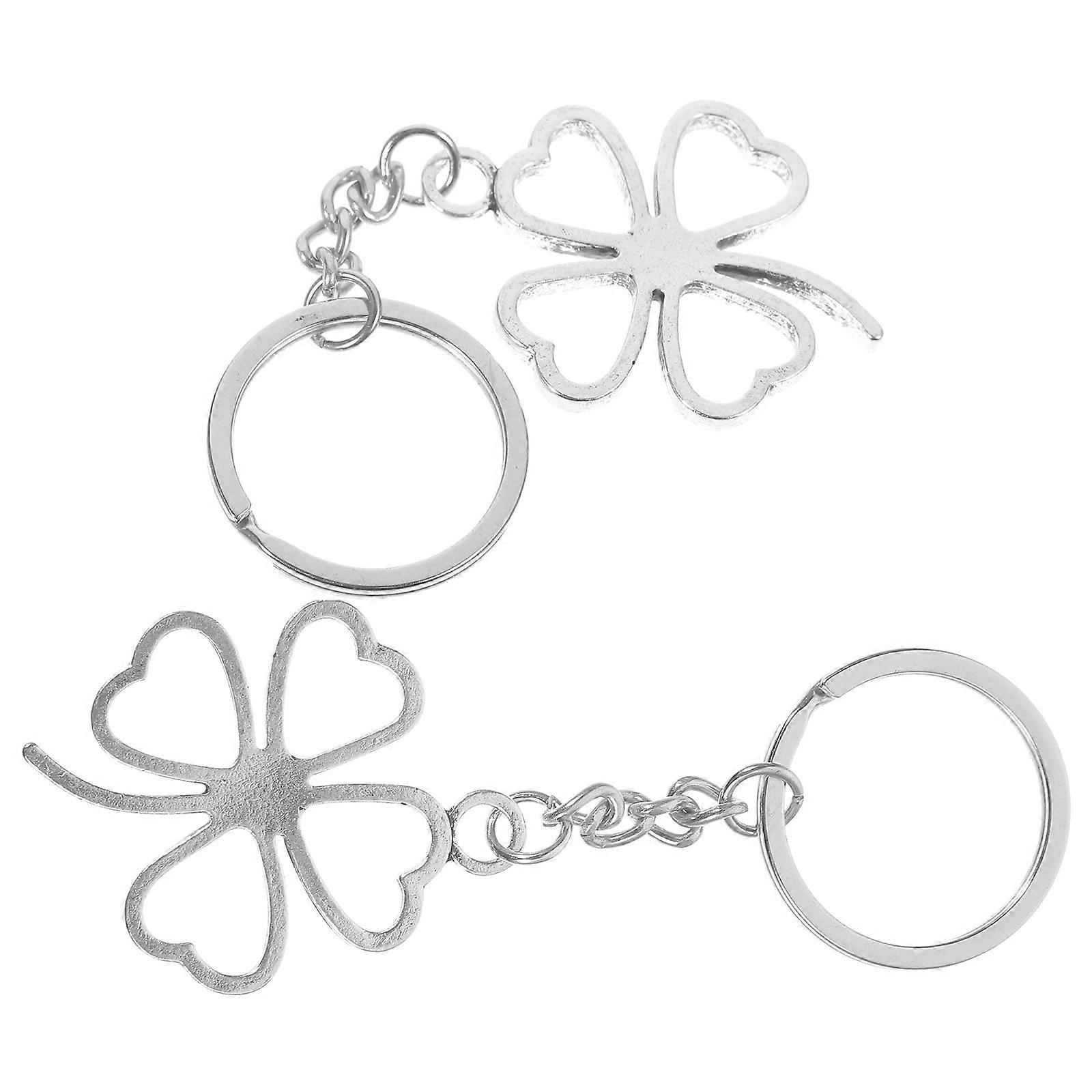 2Pcs Clover Keyring with Shamrock Charm Pendant for Women Jewelry Key Chain