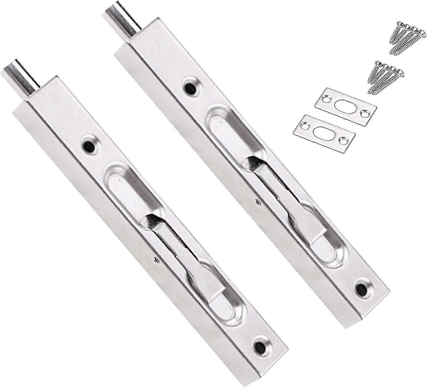 2 Pcs Door Flush Bolt Guard Concealed Slide Bolt Lock - 8 Inch Concealed Security Door Lock for French Doors, Composite Doors,Wood Doors,Double Doors