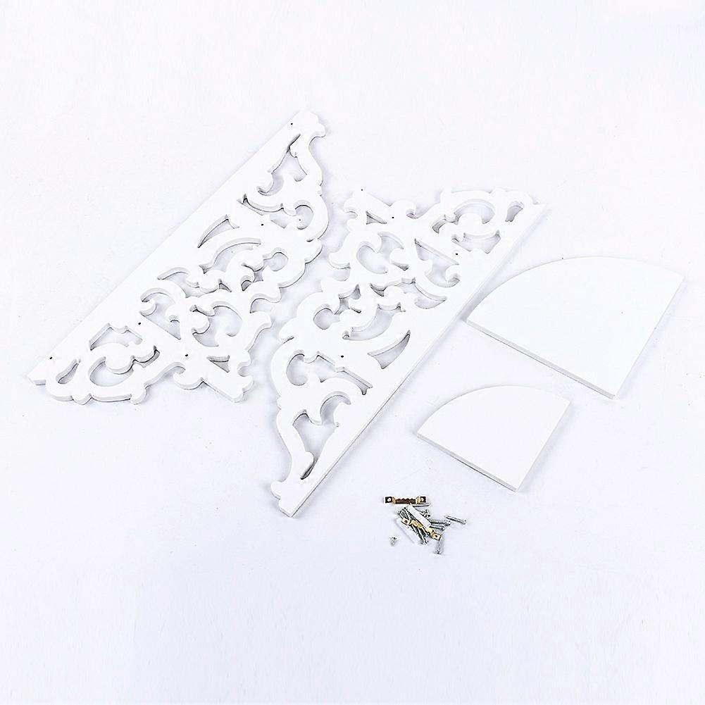 Description: The corner shelf. Create dramatic mood lighting by using this piece to hold candles in each corner ofroom! Designed to be hung on a wall and is perfect for showcasing your favorite ornaments or small vases.Features:Whitewashed surface painted by health, safety and waterproof paint. Anti-water and moisture, acid and pest resistant, contains no toxic chemicals or preservatives. Durable and firm due to its high density.Environmental friendly & fully recyclable after use. Specification: Color: WhiteSize:Length:Approx. 45cm/17.7inSmall Fan ShapeRadius:Approx.12cm/4.7inLarge Fan ShapeRadius: Approx.17cm/6.7inPackage Included: 1 x White Corner display Shelf Note:Potted plants and other accessories are not included