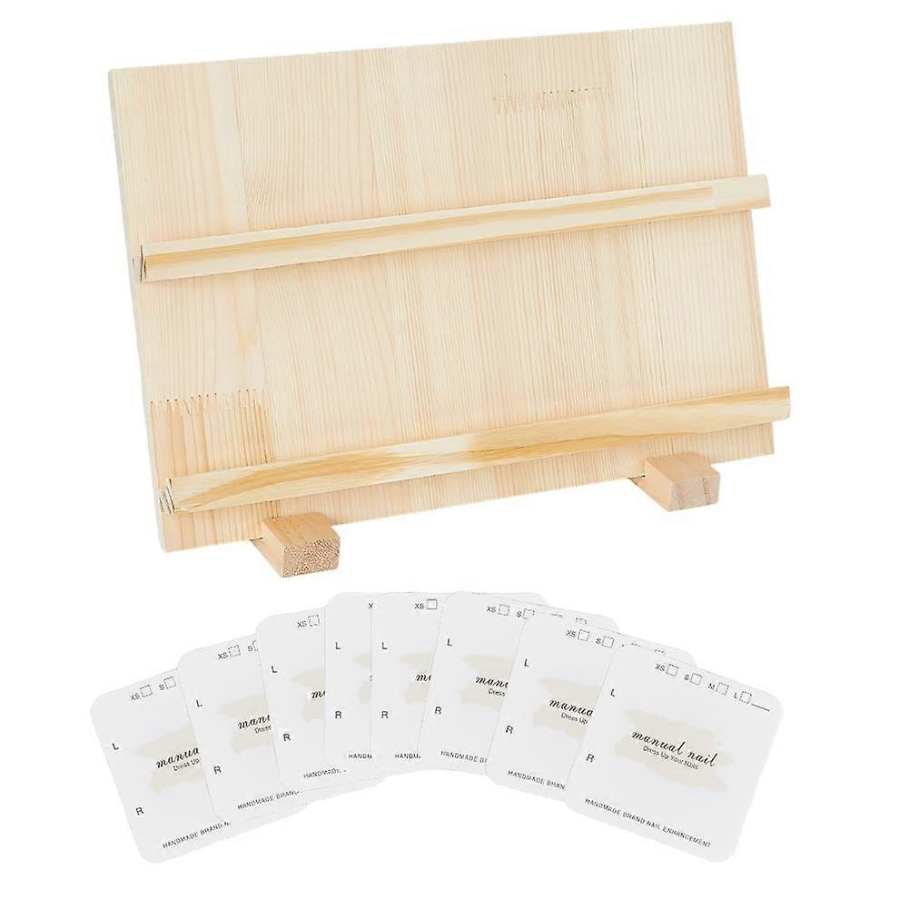 2 Layers Wood Earring Display Stand with 8 Nail Art Card Holders for Retail Jewelry Showcase, Tabletop Jewelry Organizer