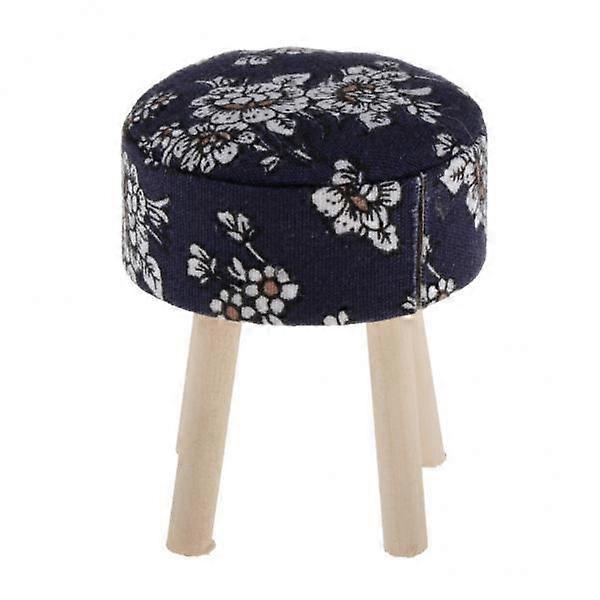2-4pack 1:12 Dollhouse Miniature Furniture Wood Upholstered Round Stool Blue